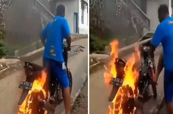 Gridmotor.id - Viral sebuah video yang memperlihatkan motor dalam kondisi terbakar api pada bagian belakang.