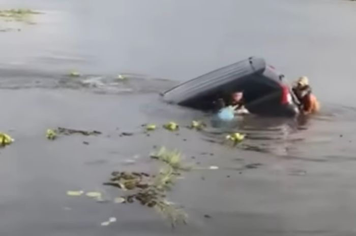 Keduanya lalu berenang ke tepian, sementara mobil langsung tenggelam ke dasar air rawa yang cukup dalam.