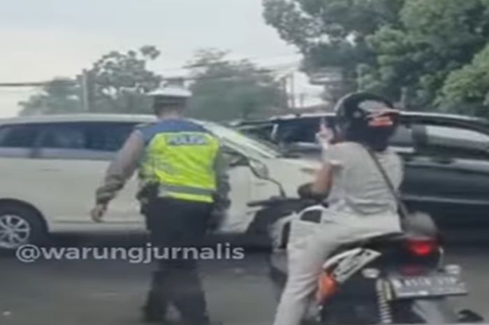Polantas yang diacungkan jari tengah oleh pengendara motor itu adalah Kepala Unit Lalu Lintas Pasar Rebo AKP Gede Oka Sukamto.