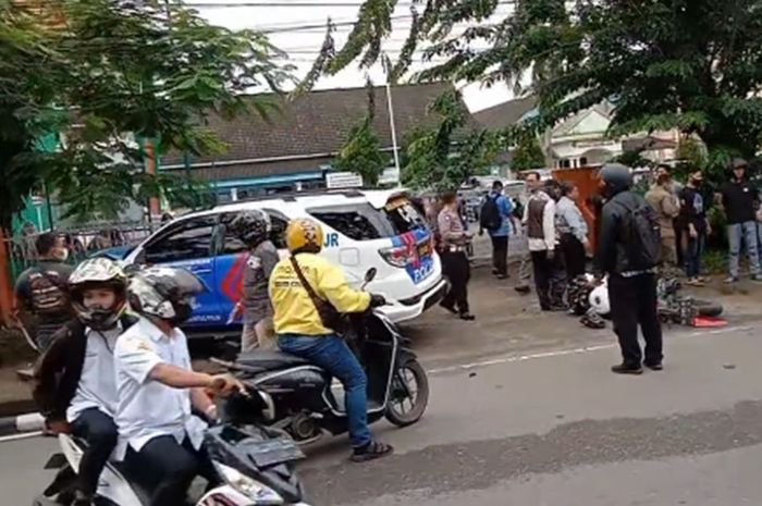 Sebuah mobil PJR diketahui menbarak pemotor di jalan.