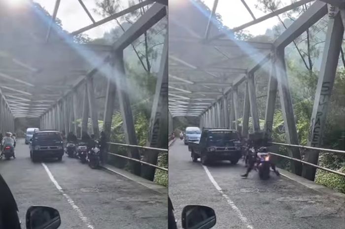 Gridmotor.id - Viral sebuah video yang memperlihatkan beberapa pemotor sedang nongkrong asyik (nongky) di jembatan.