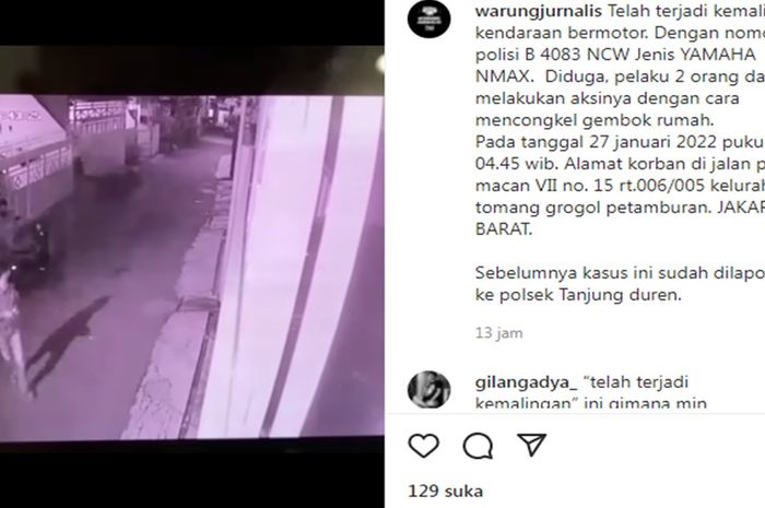 Rekaman cctv itu kemudian diunggah oleh akun Instagram @warungjurnalis.