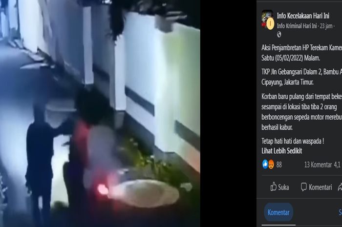 Gridmotor.id - Ramai sebuah video yang memperlihatkan seorang perempuan pulang dari kerja HP-nya dijambret pemotor.