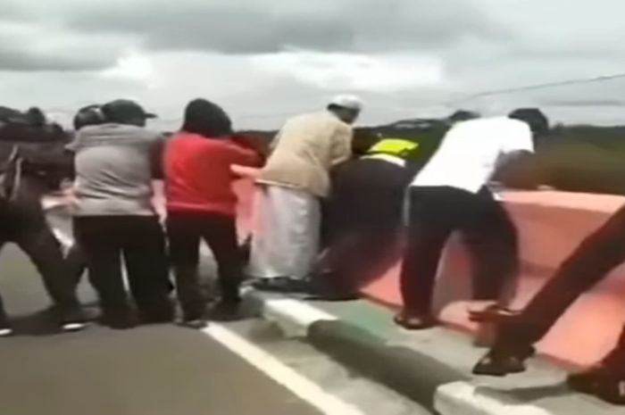 Gridmotor.id - Ramai sebuah video yang memperlihatkan warga mengevakuasi korban kecelakaan motor yang terlempar dari jembatan.