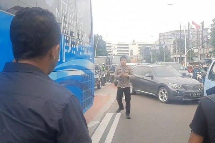 Seorang oknum Polisi berteriak-teriak tak jelas hingga nekat mencegat bus TransJakarta.