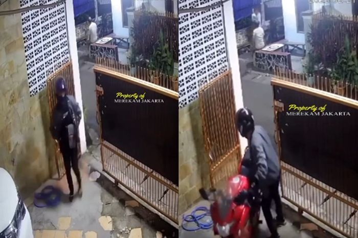 Aksi pelaku curanmor sempat terekam dalam kamera cctv rumah korban.