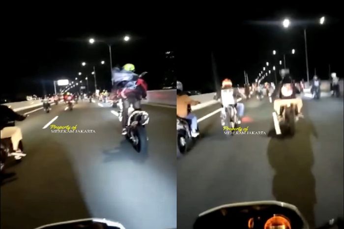 Gridmotor.id - Sebuah video memperlihatkan rombongan pemotor nekat masuk jalan tol Kelapa Gading- Pulo Gebang secara ugal-ugalan.
