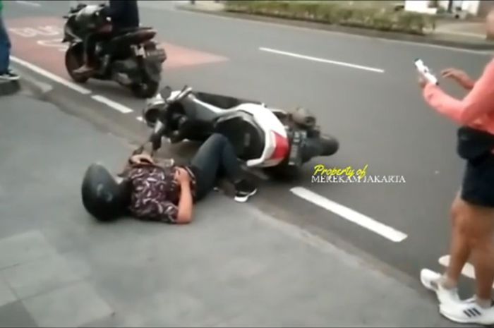 Dalam video tersebut terlihat pemotor Yamaha NMAX sedang tertidur pinggir Jalan Kemang Raya, Bangka, Mampang Prapatan, Jakarta Selatan.