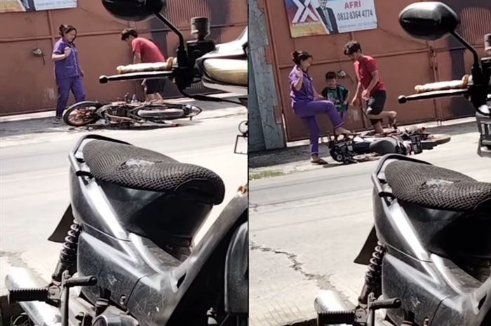 Momen keributan itu direkam oleh salah satu warga yang melihat kejadian tersebut.