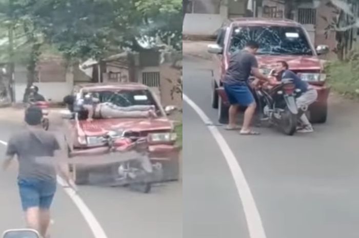 Gridmotor.id - Sebuah video memperlihatkan pemotor Yamaha Vixion adu banteng dengan mobil Isuzu Panther.
