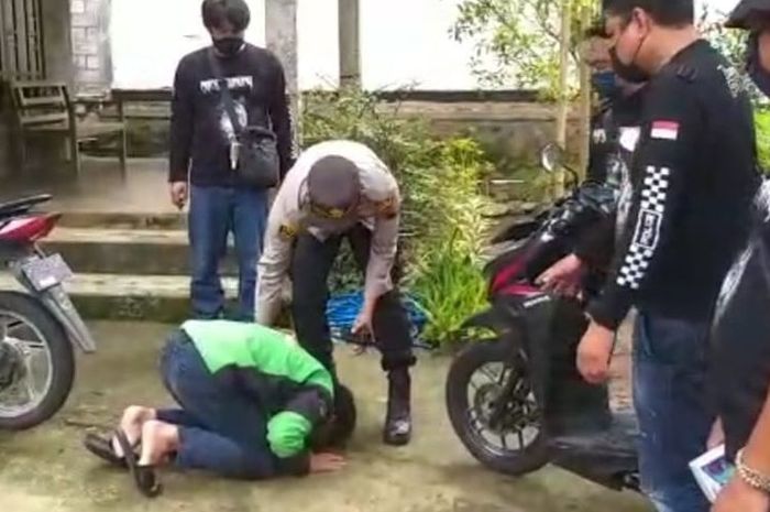 Sontak driver ojol yang bernama Muhammad Ilham hingga ia bersujud di kaki Kapolsek Bandungan, Iptu Ari Parwanto.