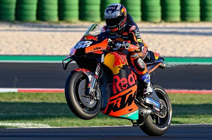 Gridmotor.id - Pembalap Red Bull KTM Factory Racinf Miguel Oliveira juara MotoGP Mandalika 2022 bikin haru kemenangan itu didedikasikan buat seoranga karyawan hotel.