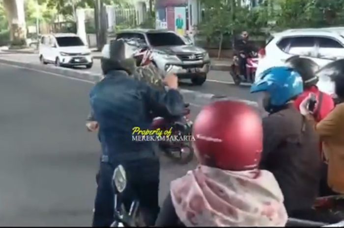 Gridmotor.id - Sebuah video memperlihatkan salah satu pemotor terlibat baku hantam dengan pak ogah di Pangeran Antasari.