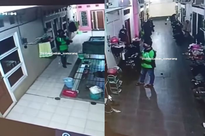 Aksi pelaku yang diduga driver ojol tersebut terekam jelas dalam kamera CCTV.
