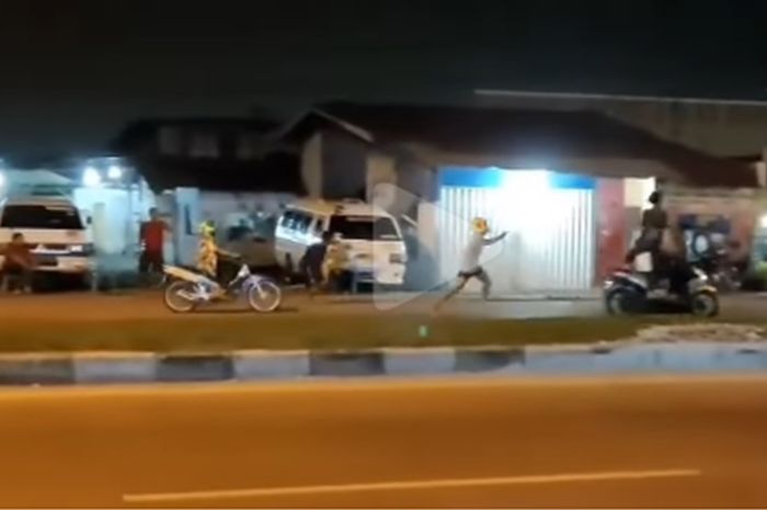 Aksi tawuran geng motor tersebut sempat direkam oleh warga sekitar.
