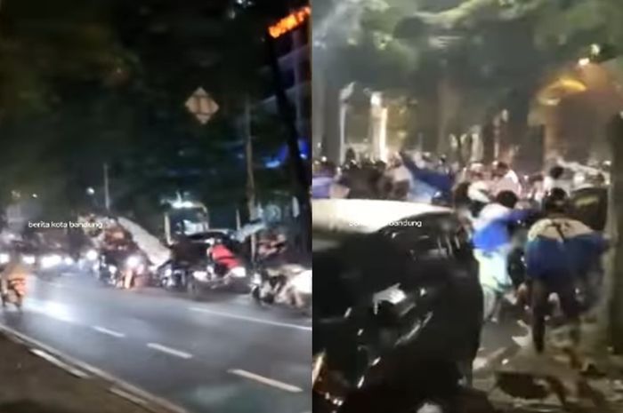 Terlihat dalam video tersebut, iring-iringan para pelaku geng motor memadati Jalan Ambon, Kota Bandung.