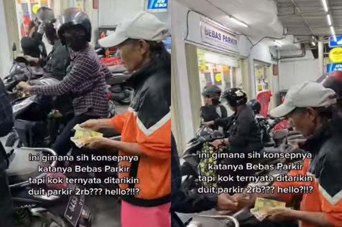 Namun ternyata pemotor yang parkir di minimarket tersebut tetap saja dimintai uang parkir.