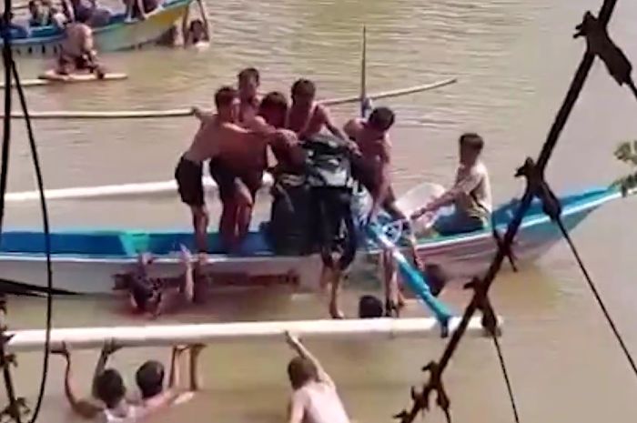 GridMotor.id - Beredar rekaman video warga dan motor terjatuh ke sungai usai jembatan gantung tiba-tiba putus.