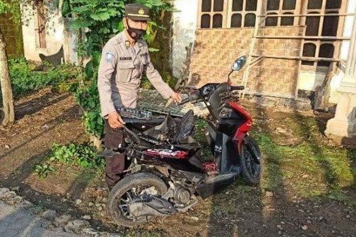 GridMotor.id - Usai pulang belanja sayur tertabrak kereta api begini kondisi motor Honda BeAT milik Emak-emak asal Blitar.