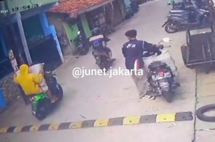 GridMotor.id - Sedang mengantarkan paket, kurir bermotor di Cengkareng mengalami nasib apes.