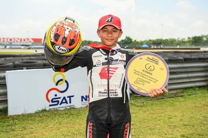GridMotor.id - Pembalap Indonesia Decksa Almer Alfarezel disambut meriah usai berhasil juara di race 2 Thailand Talent Cup 2022 ronde 2.