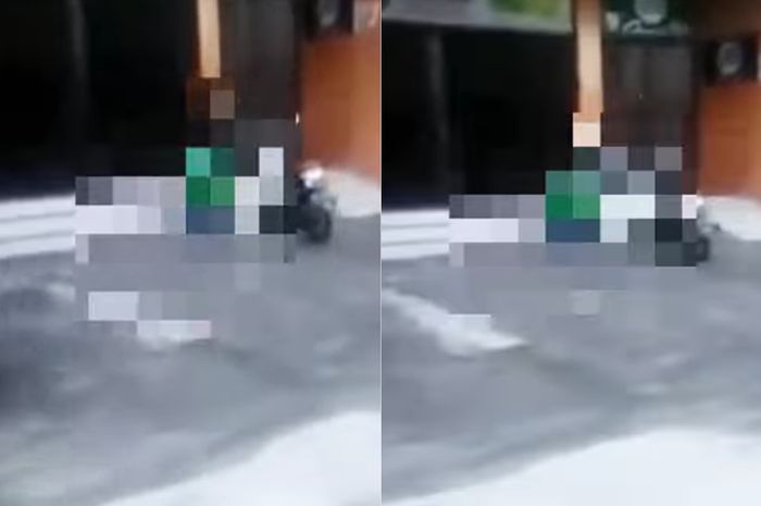Saat itu ada perekam yang berboncengan dengan temannya naik motor.