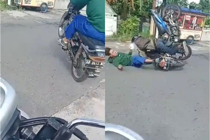 Bahkan pemotor Honda Prima itu sempat terpental dari motornya.