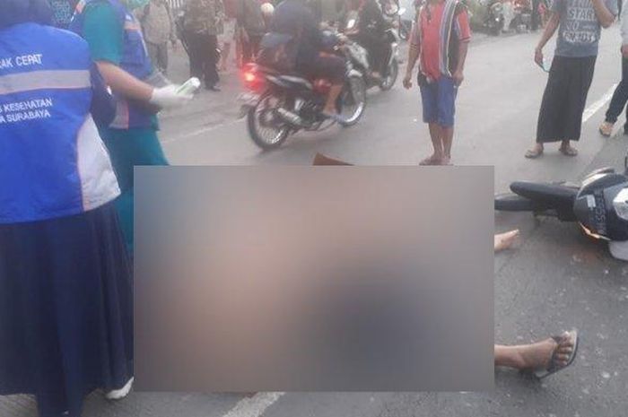 Kejadian bermula saat kedua korban berboncengan dengan motor Honda Supra X nopol W 6955 HW didekati dua orang jambret bermotor.