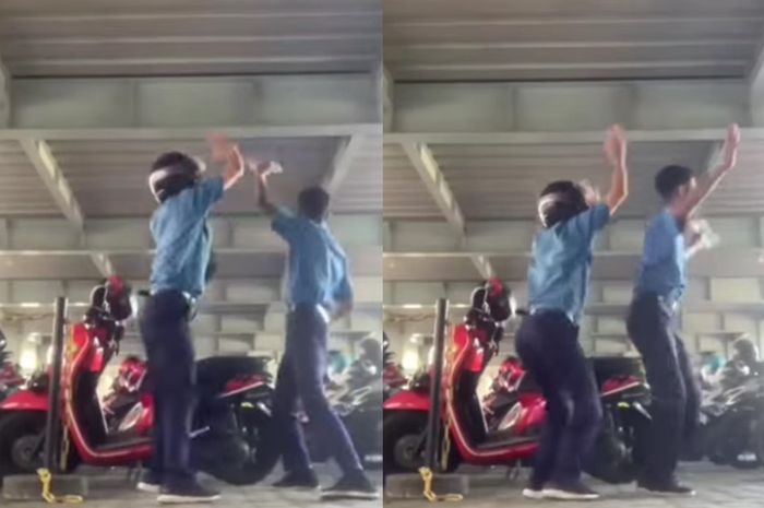 Gridmotor.id - Sebauh video memperlihatkan dua orang berseragam tampak berjoge-joget usai menggebrak motor Honda Scoopy.