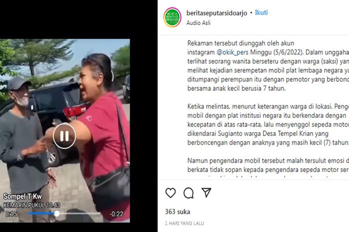 Gridmotor.id - Sebuah mobil berpelat merah diketahui menyerempet pemotor di Sidoarjo.