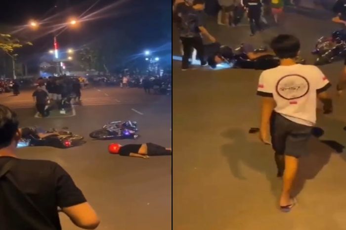 Momen tersebut pun sempat direkam oleh salah satu penonton balap liar.