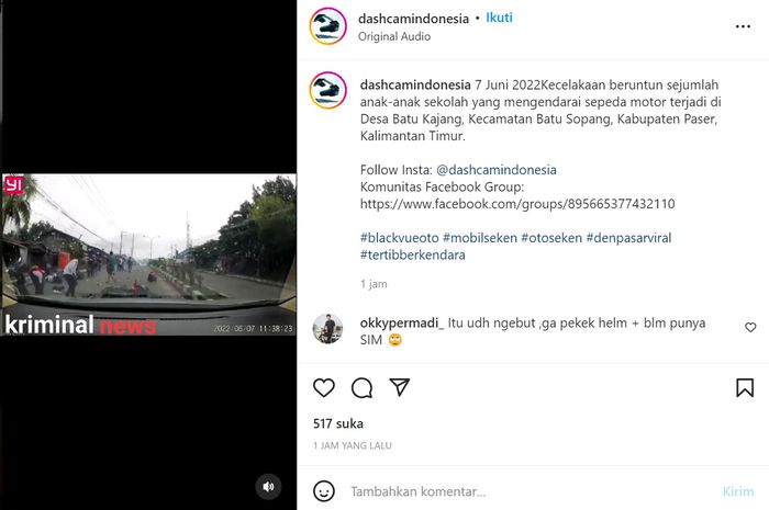 Dalam video kecelakaan tersebut melibatkan tiga kendaraan bermotor yang semuanya berboncengan.