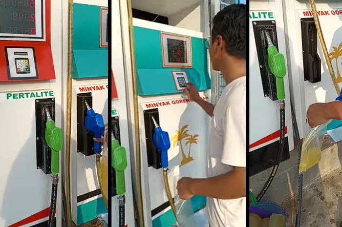 Pasalnya disebelah mesin pengisi BBM Pertalite itu terdapat mesin minyak goreng.