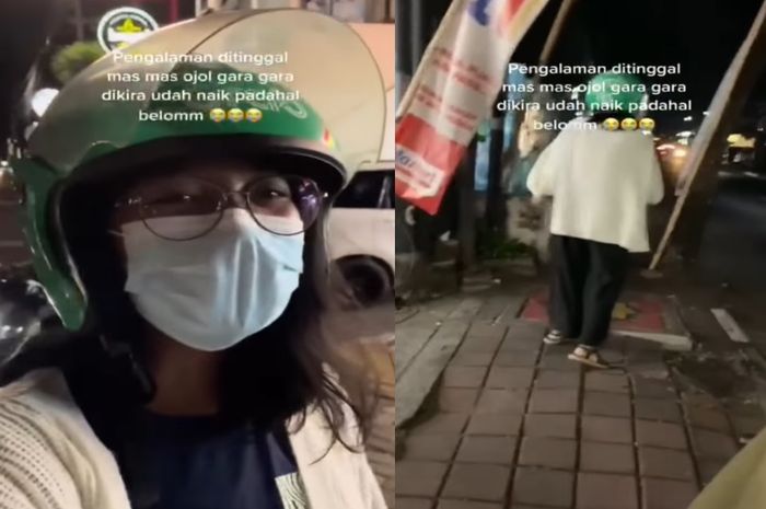 Uniknya, saat cewek tersebut sedang mengenakan helm, driver ojol yang dipesannya itu malah meninggalkannya.