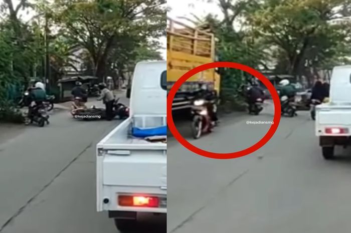 Gridmotor.id - Sebuah video memperlihatkan kecelakaan yang melibatkan dua pemotor di Kota Semarang.