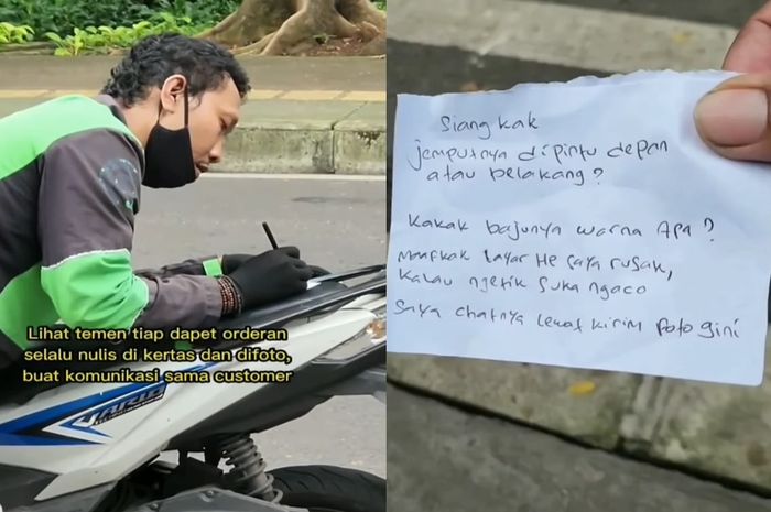 Dengan begitu driver ojol itu masih bisa merespon pesan tertulis customer meski harus menulis terlebih dulu di kertas.