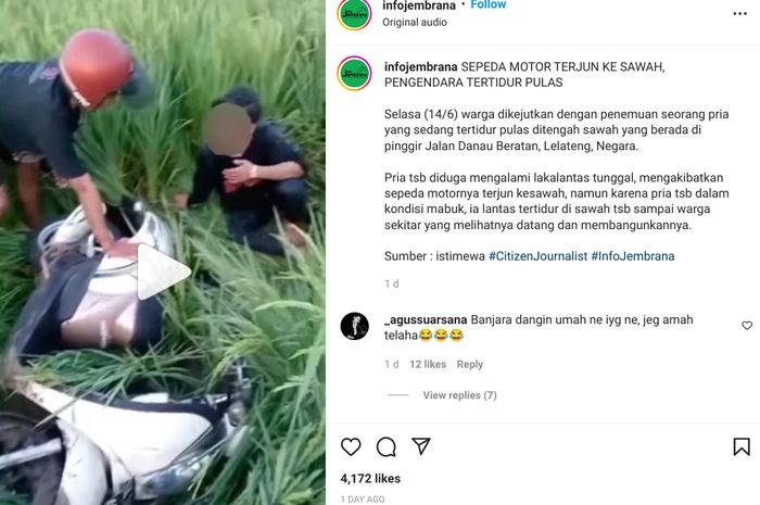 Video itu diunggah oleh akun Instagram @infojembrana pada Selasa (14/6/2022).