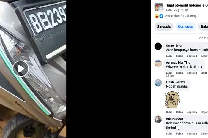 Video itu diunggah oleh akun Facebook Aldii di grup Hujat Otomotif Indonesia Official, Rabu (15/6/2022).