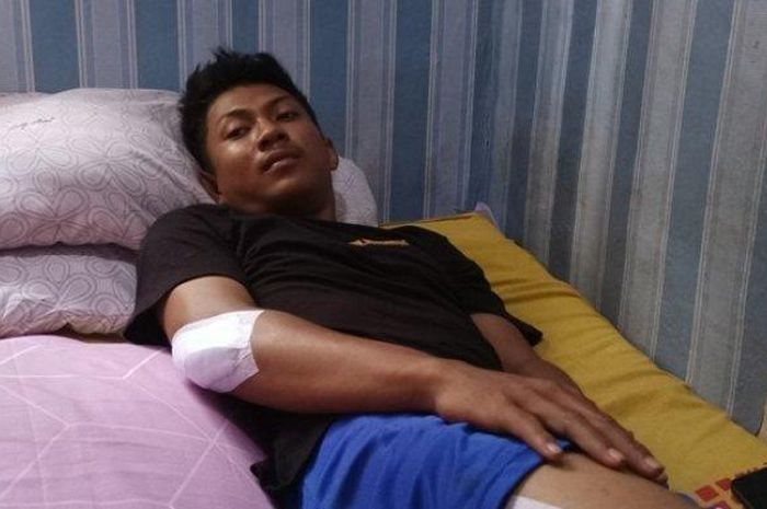 Fajar dilaporkan mendapatkan luka sepanjang 15cm dengan kedalaman 3cm di paha dan 11 cm di tanggannya.