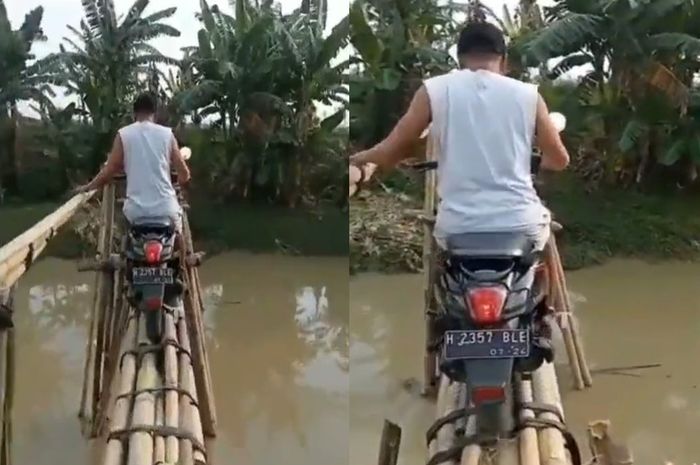 Dalam video tersebut terlihat pemotor Honda Scoopy nekat melewati jembatan kayu yang ekstrim.