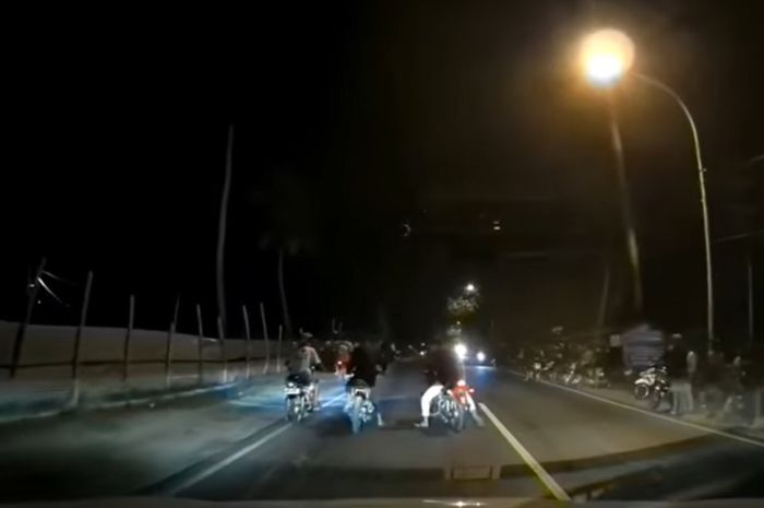 Gridmotor.id - Sebuah video memperlihatkan salah kedaraan mobil bubarkan balap liar motor.