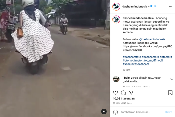 Selain itu pakaian yang menjuntai bisa menutupi lampu sein motor sehingga pengendara lain tidak bisa melihat pergerakan kendaraan.
