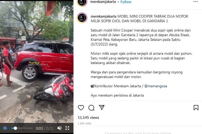 Insiden itu diketahui beredar di media sosial, seperti yang terlihat di akun Instagram @merekamjakarta.