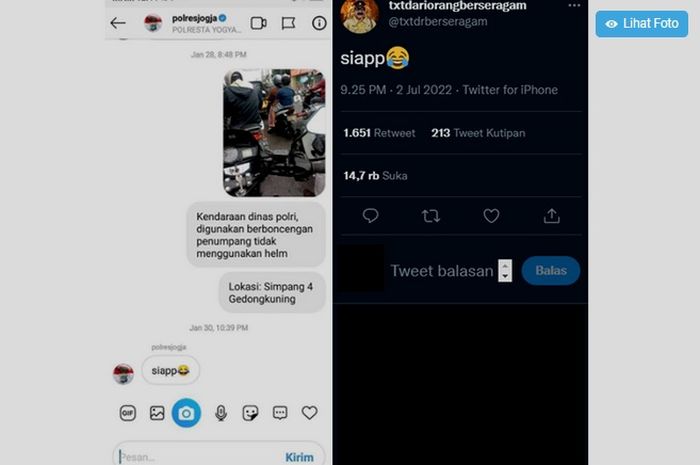 Jawaban DM dari akun Instagram @polresjogja pun menjadi sorotan warganet.