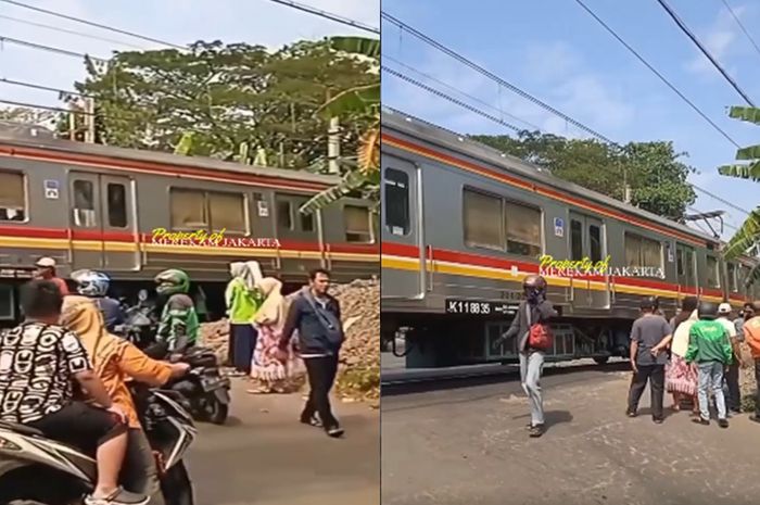 Sebuah video yang diunggah oleh akun Instagram @merekamjakarta memperlihatkan driver ojol tewas tertabrak kereta api.