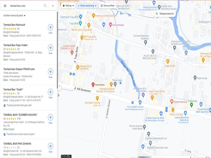 - Setelah itu bakal keluar pilihan tambal ban terdekat sampai terjauh, lalu pilih salah satu.