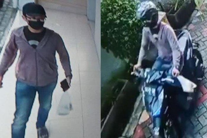 Dalam rekaman CCTV, pelaku terlihat memakai jaket sweater, bertopi hitam, berkacamata dan masker warna hitam.