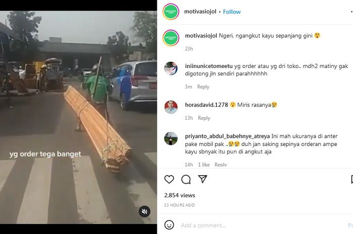 Hal itulah yang terlihat pada video unggahan akun Instagram @motivasiojol berikut ini, di mana seorang driver ojek online terlihat mengangkut beberapa balok kayu panjang sambil mengendarai sepeda motornya.