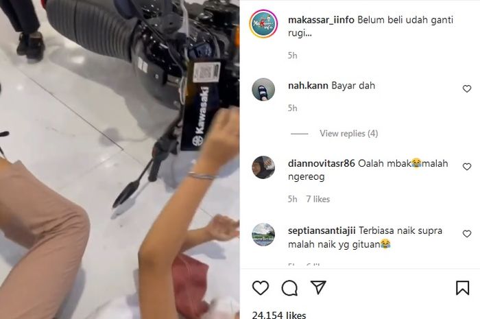 Dalam video yang diunggah akun Instagram @makassar_iinfo memperlihatkan seorang wanita yang sedang mencoba Kawasaki W175.