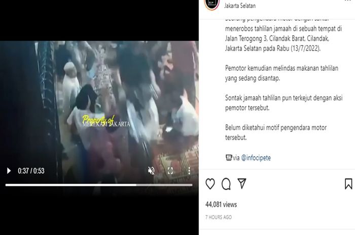 Gridmotor.id - Sebuah video memperlihatkan pemtor Honda Vario nekat menerobos hingga melindas berbagai hidangan tamu pengajian di Cilandak.